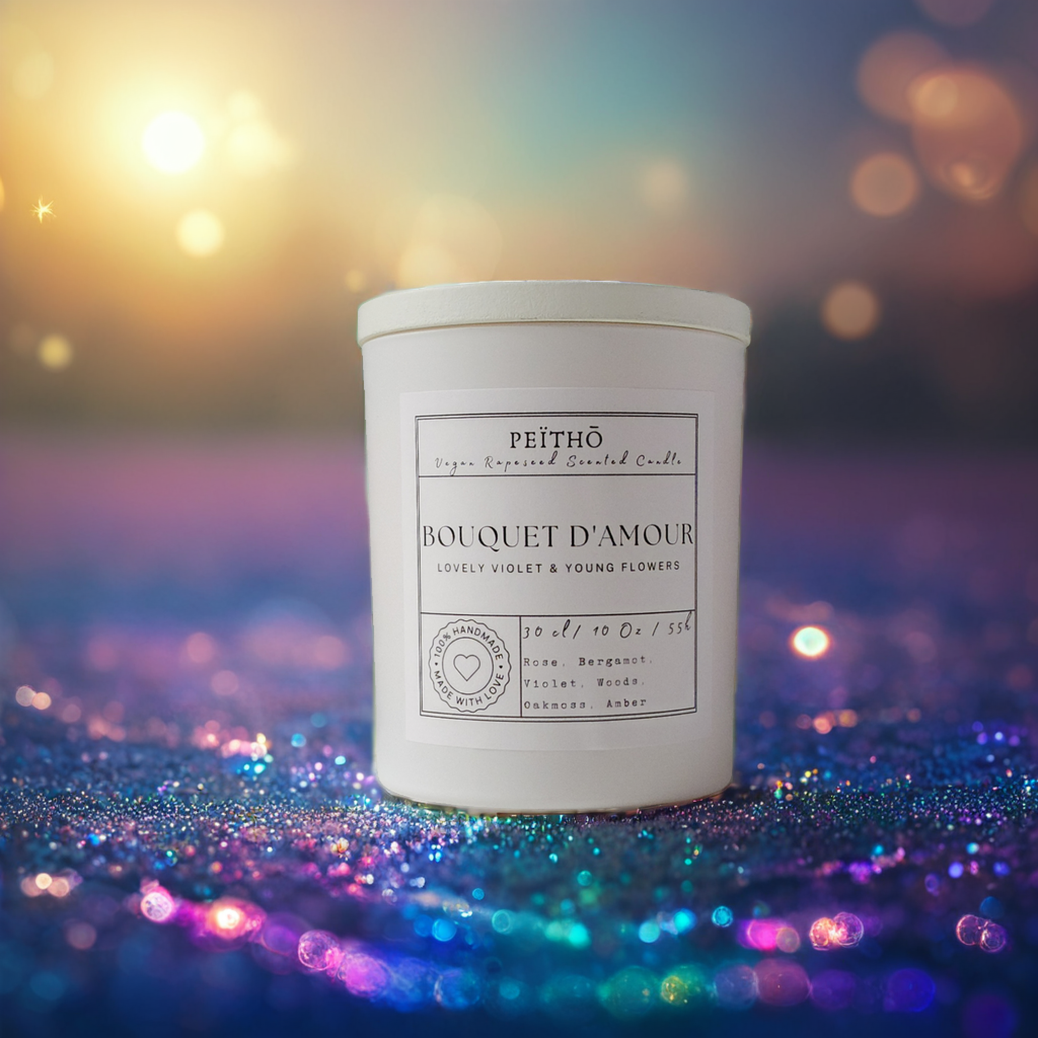 As you light the Bouquet d’Amour candle from Peïthō, you are transported to a secret garden of enchanted beauty and serenity. You smell the rose and bergamot notes rising in the air, blending with woody undertones and lighter touches of violet and oak moss. As the amber notes spread throughout each room, it’s like you have been taken away to an ethereal place of love. With every burning flame, you can feel your emotions of joy, happiness and love being filled by this beautiful scent. This calming fragrance is sure to bring a smile to your face no matter how stressful or sad your day may be. And with every hour that passes, the Bouquet d’Amour will remind you what true peace looks like.